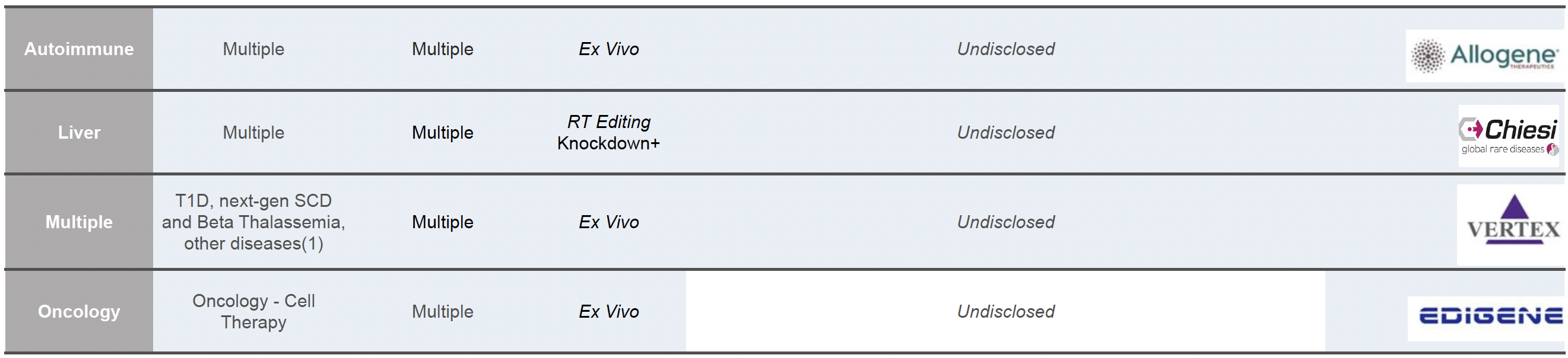Since our founding, we have developed a wholly owned portfolio of editing technologies to create targeted in vivo genetic medicines that offer potential for one-time dosing with durable effects that span a patient’s lifetime. We have focused our efforts on developing treatments for diseases with high unmet need where we can provide differentiated therapies for patients.