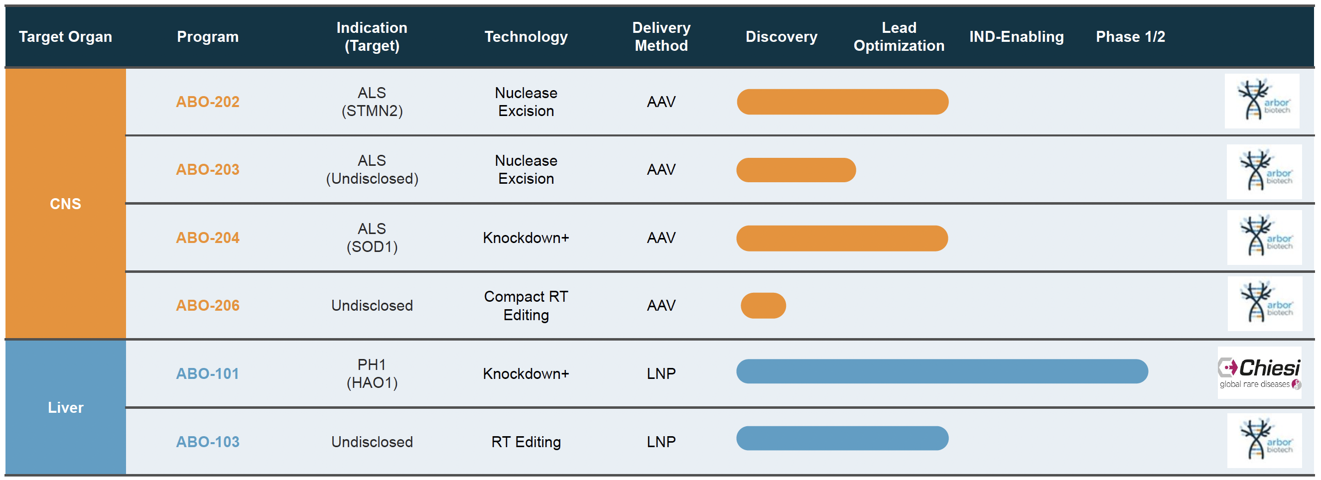 We are focused on the central nervous system (CNS), where there are many devastating diseases that lack effective treatment options. Advancements in gene editing technologies and delivery mechanisms unlock exciting new opportunities to effectively target the underlying drivers of many CNS diseases. We are starting with ALS as our initial indication for CNS targeting and are developing assets suitable for delivery via adeno-associated virus (AAV) vectors to target regions of the brain that will provide the most meaningful benefit to patients. As delivery mechanisms continue to mature, we plan to expand into other brain region-specific indications such as frontal temporal dementia and subsequently into neurodegenerative diseases located in deeper brain structures.